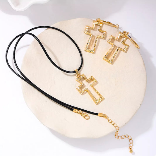 Cross Pendant Necklace & Hoop Earrings Jewelry Set