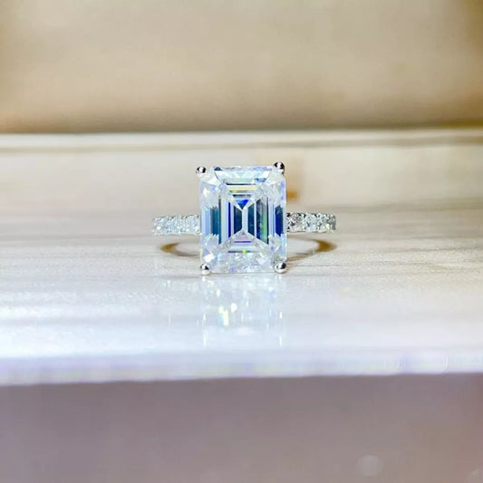 Emerald Cut 4 Carat Moissanite Side Stone Ring