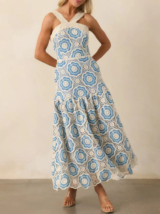 MABLE Lightweight Pointelle Chevron Knit Maxi Dress