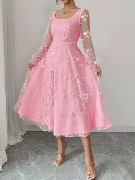 Lace Flounce Sleeve Midi Dress