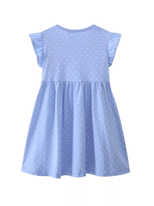 Children's Polka Dot Bunny Embroidered Ruffle Sleeve Dress