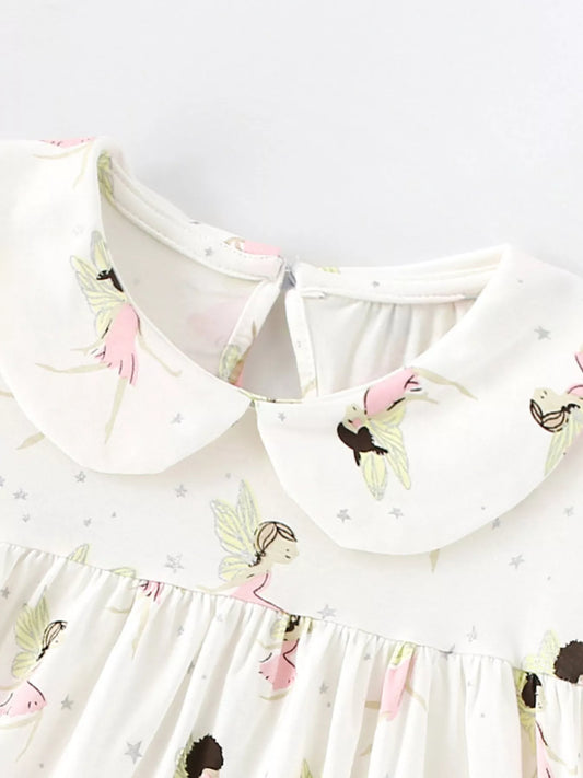 Children's Fairy Print Peter Pan Collar Puff Sleeve Dress