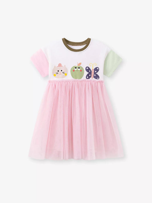 Children's Cartoon Short Sleeve Tulle Dress