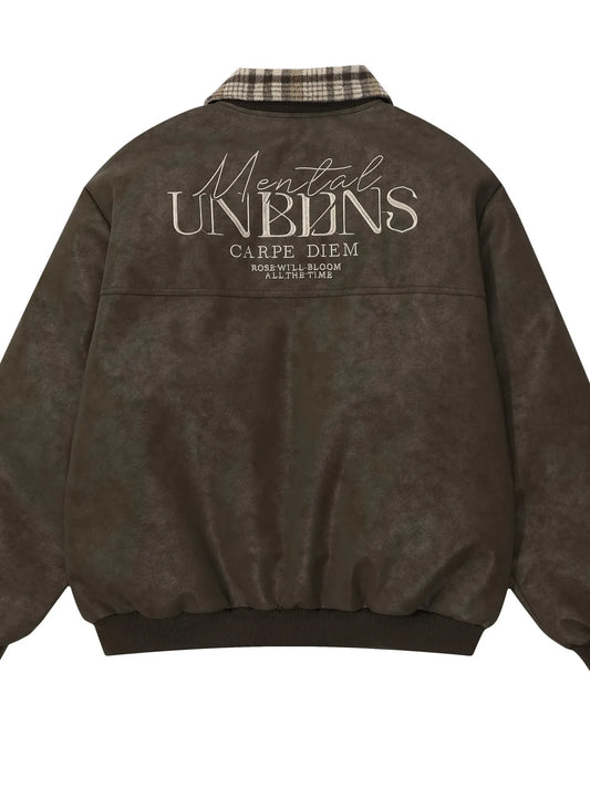 Men's Plaid Collar Detail Zip Up Jacket