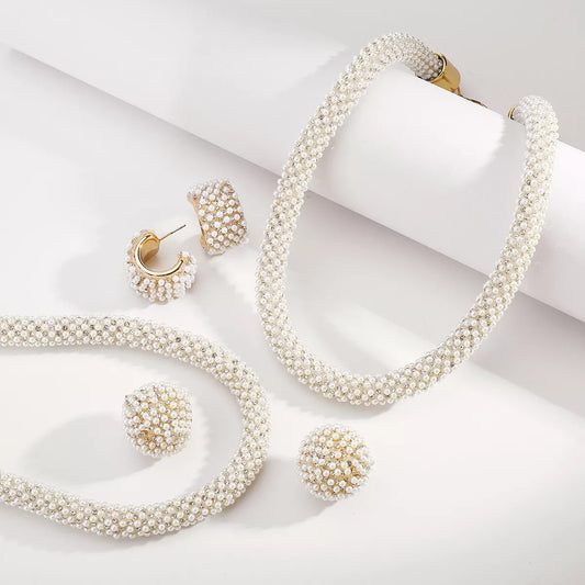 Pearl Embellished Earrings and Necklace Jewelry Set