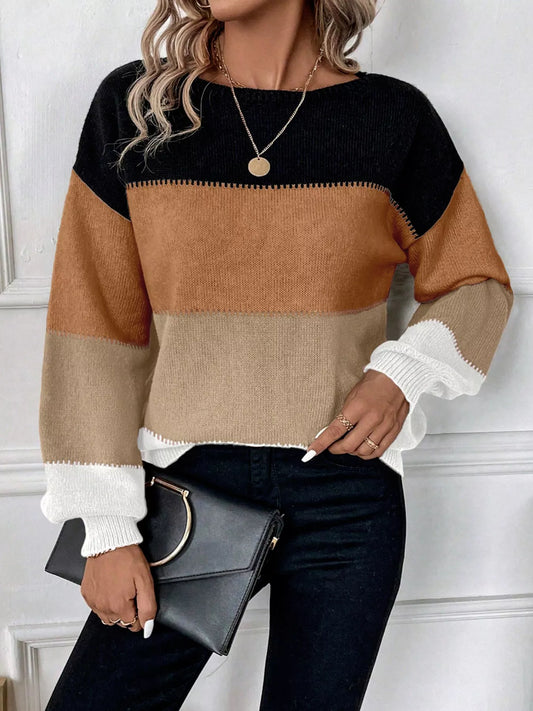 Angel Wings Multicolored Rib-Knit V-Neck Knit Pullover