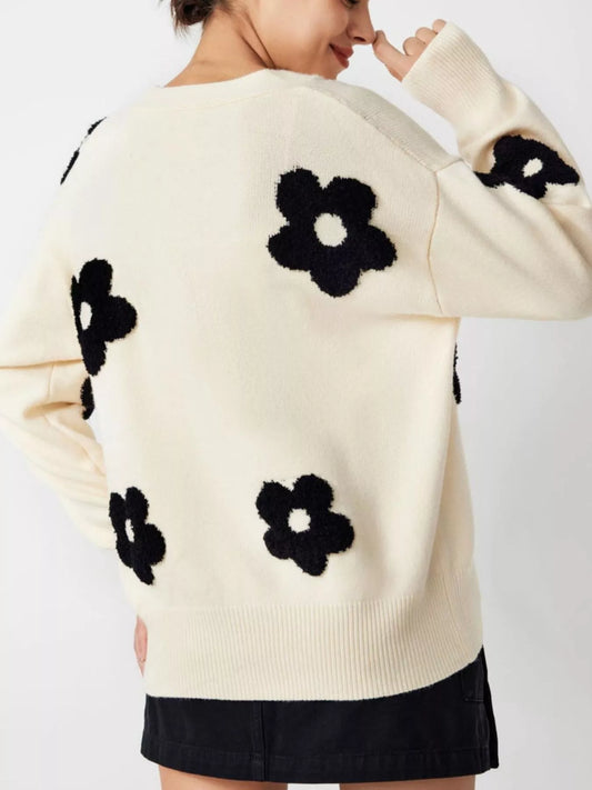 HEYSON Full Size Floral Embroidered Cable Cardigan