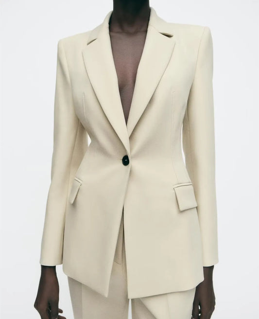 MYST&ZA Women's 2025 Spring New Simple Elegant Shoulder Cotton Slim Suit 2204696 Trousers 2198696