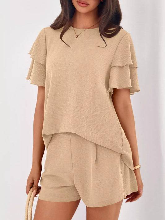 Ruffle Sleeve Top and Shorts Two-Piece Set