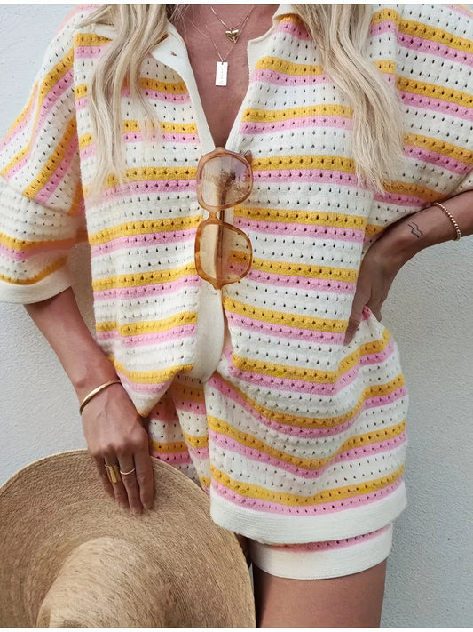 Plus Size Ribbed Knit Button-Front Top and Pants Set
