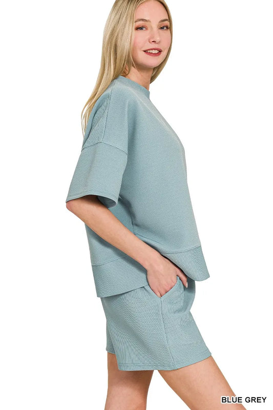 Zenana Ribbed Round Neck Waist Banded Tee & Shorts Set