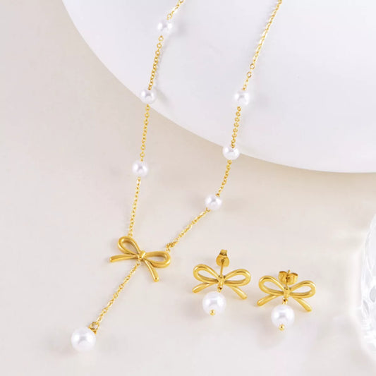 18K Gold-Plated Bowknot Pearl Jewelry Set