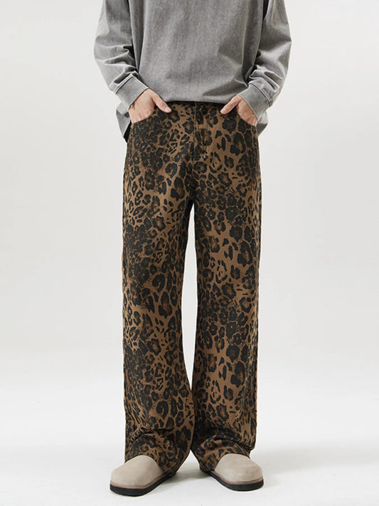 Men's Full Size Leopard Print Wide-Leg Relaxed Fit Jeans Plus Size