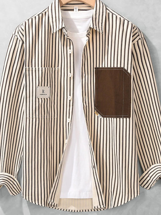 Men's Plus Size Button Down Striped Collared Neck Shirt