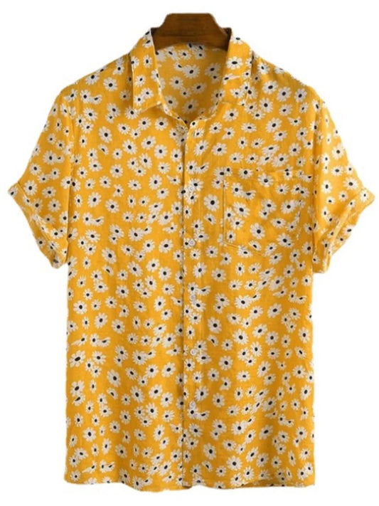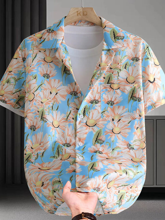 Men's Full Size Daisy Print Button Up Shirt Plus Size