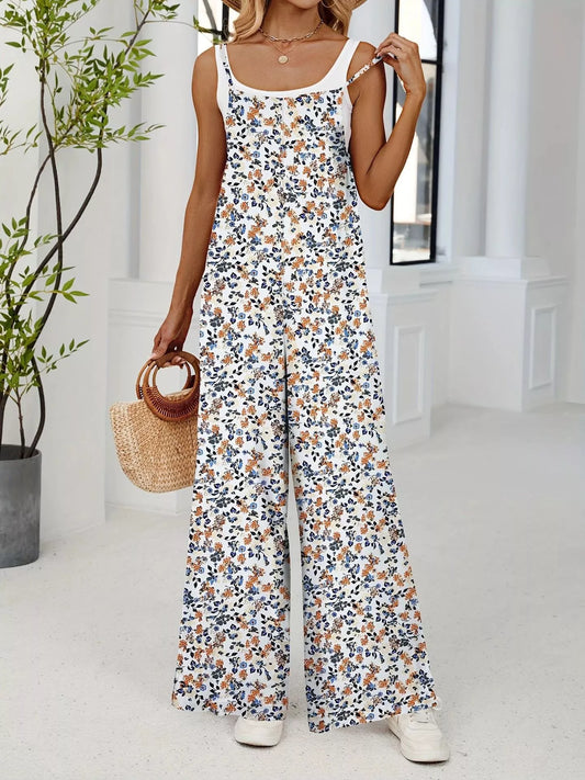 Floral Print Square Neck Wide Leg Jumpsuit