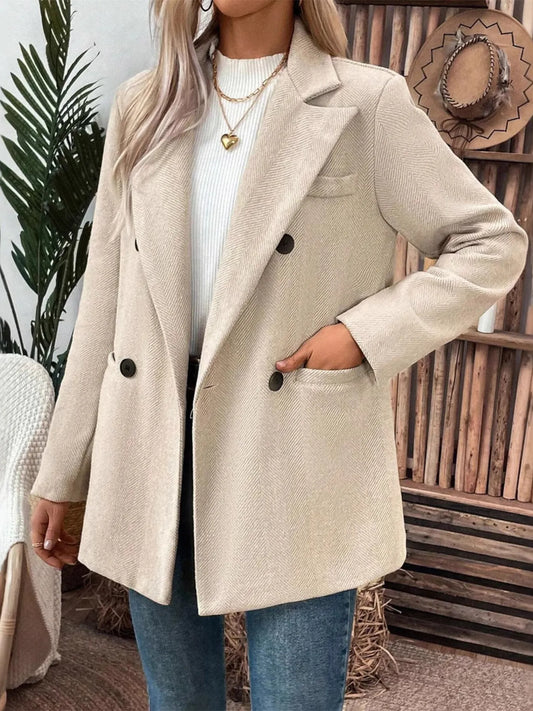 Full Size Plaid Single-Breasted Long Sleeve Blazer Plus Size