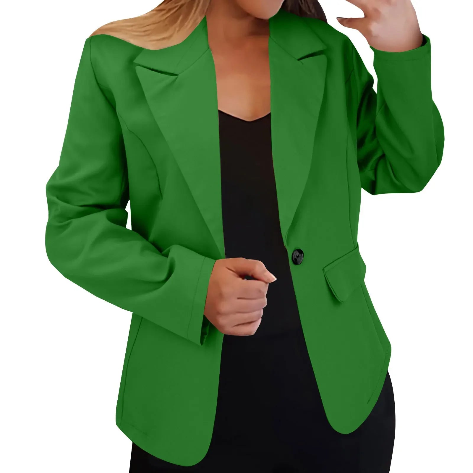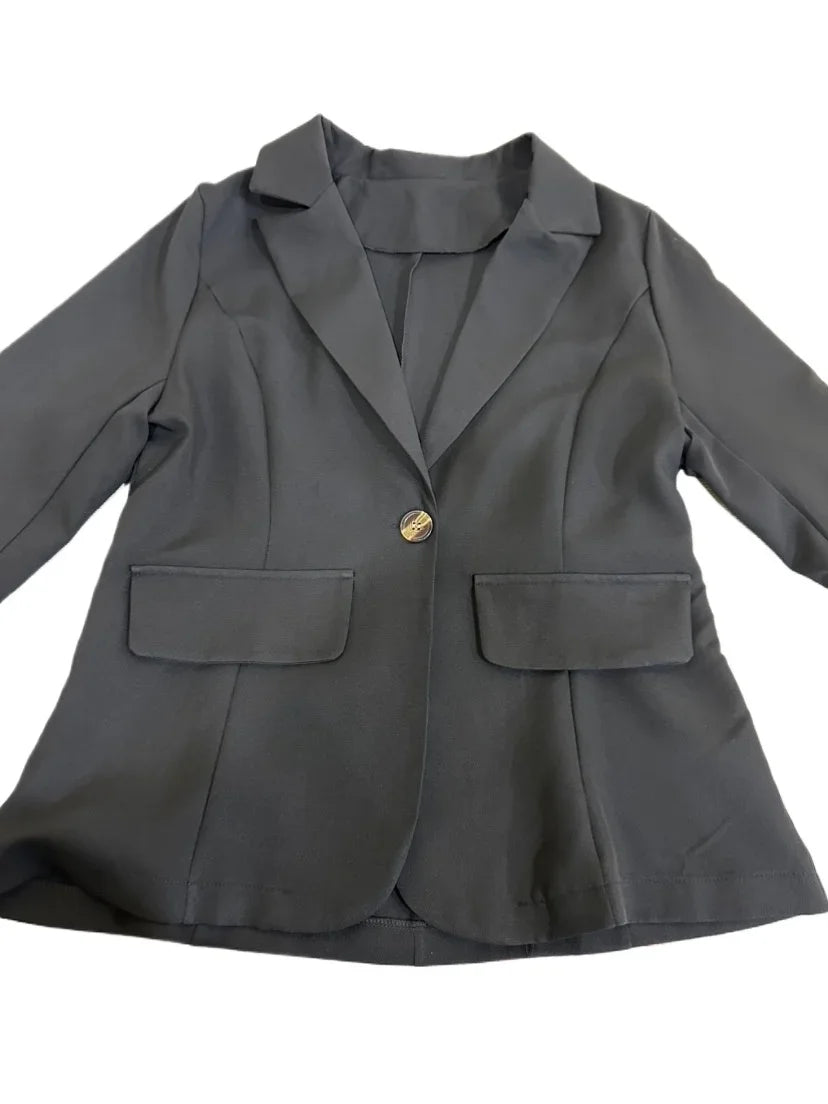 Women's Minimalist Solid Button Lapel Collar Blazer Commuter Long Sleeve Coat Cardigan Elegant Solid Casual Tailored Suit Tops