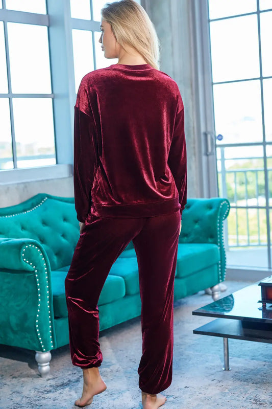 Round Neck Long Sleeve Top and Pants Lounge Set