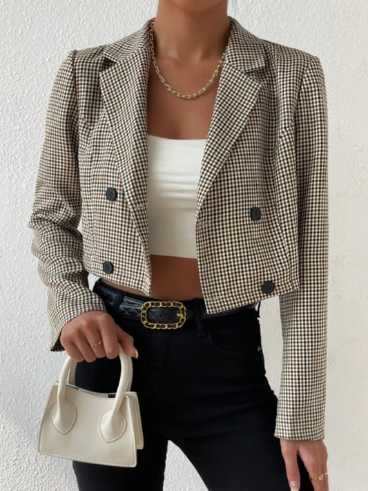 HYFVE Herringbone Mixed Media Contrast Long Sleeve Blazer