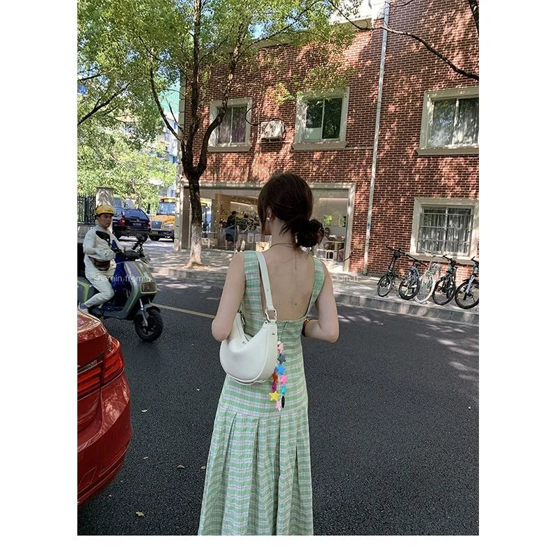 Sweet And Sal Color Blo Plaid Strap Dr Women's Spring Summer New Medium Length Slimming Versatile Svel A-Line Skirt